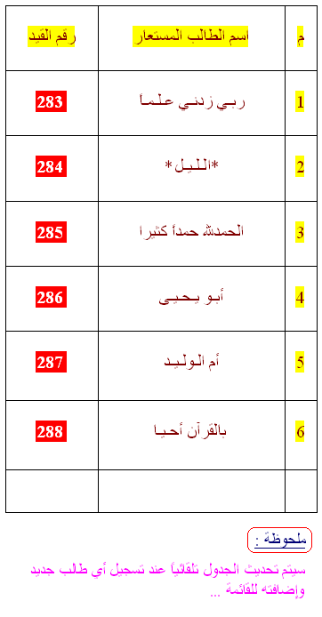 بسم الله الرحمن الرحيم وبه نستعين على أمور الدنيا والدين ![]() الحمد لله والصلاة والسلام على رسول الله وآله وصحبه ومن والاه وبعد.... ... سبحان من جعل العلم نوراً والجهل ظلاماً ... فرفع الله بالعلم أقواماً وشرفهم وجعل لهم مكانة خاصة وسماهم بالعلماء وأولياء الله وخاصته ... فقال في كتابه الكريم : ** (( يرفع الله الذين آمنوا والذين آتوا العلم درجات )) ** ![]() بعد الإطلاع على لوائح وشروط القبول والتسجيل في الأكاديمية فقد تقرر الآتي : أولاً :اعتماد الطلاب الذين استوفوا جميع الشروط وقاموا بالإجراءات كاملة ، فقد تم اعتمادهم رسمياً ومنحهم رقم قيد وطلاب الدورة الخامسة للعام الأكاديمي 2012م وهم كالتالي : ![]() ثانياً : التعليمات : 1. هؤلاء الطلاب قد تم اعتمادهم رسمياً بعد استيفائهم للشروط كاملة وتم منحهم رقم القيد الخاص بالأكاديمية وهم بذلك طلاب الدفعة الخامسة للعام الأكاديمي 2012م ... 2. كل تعاملاتنا الرسمية بين الطالب وإدارة الأكاديمية ستكون عن طريق رقم القيد الخاص بالطالب ... 3. أول يوم دراسي في الأكاديمية هو يوم السبت الموافق 16 / 6 / 2012م ... 4. يوم الخميس الموافق 14 / 6 / 2012م ستكون جميع أقسام الأكاديمية مفتوحة لهم لكي يتعرفوا على القوانين واللوائح الخاصة بالأكاديمية ... ثالثاً : الملاحظات : * سيتم وضع تحت مسمى كل طالب صورة لرقم قيده وإننا ننوه بأنه يمنع تغيير الصورة الخاصة برقم القيد منعاً باتاً ... * ستبداء الدورة في تاريخ 16 / 6 / 2012م وستستمر إلى 20 / 11 / 2012م أي ما يقارب 5 أشهر قابلة للزيادة على حسب رغبه الطلاب حتى بعد انتهاء الطالب من دراسته يمكنه التواصل معنا دائماً علماً بأننا مددنا فترة الدراسة لطلاب الدفعة الأولى والثانية والثالثة والرابعة إلى 8 أشهر بدل من 4 فنحن في خدمتكم ما دمتم ملتزمين بقوانين الأكاديمية .... * على الطلاب الذين تم قبولهم القبول المبدئي ويرغبون بالالتحاق بالدورة الرابعة المسارعة في إتمام بقية الإجراءات قبل بدء أول يوم دراسي ... والله ولـي التوفيق والسداد ![]() ![]() 5 / 6 / 2012م [/frame] |